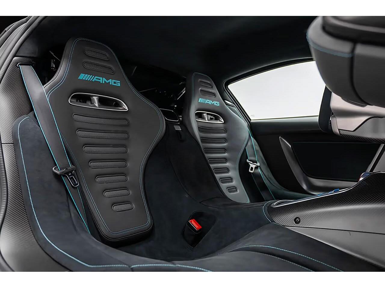 Motorsport Styling Package, Comprising Exterior Concept STAR with Mercedes-AMG Petronas Motorsport Star Pattern on Exclusive Paint AMG Hyper Black and Exclusive Colouring PETRONAS Green for AMG High-Performance Magnesium wheels and for Interior Components e.g. Stitching and accents on Seat Belts and MBUX Emblems, Logos Embroidered.