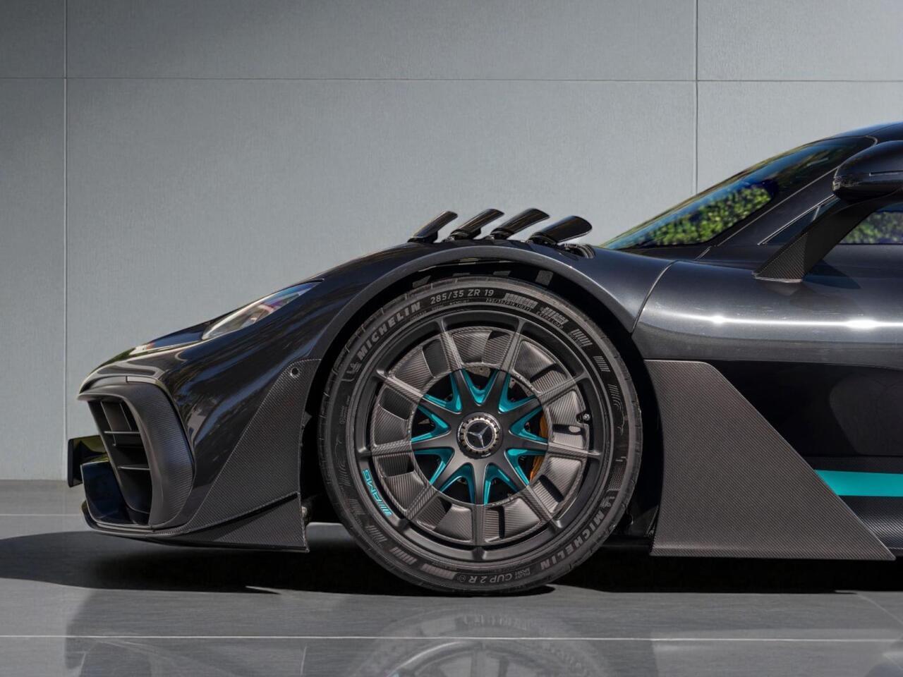 Mercedes-AMG Hypercar with a 1.6L high-revving combustion engine with MGU-K & MGU-H hybridization, automated AMG SPEEDSHIFT 7G transmission, electrically powered front axle with 2 high-performance electric motors, high-voltage battery and carbon-fibre monocoque body.